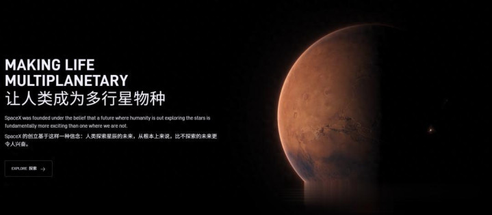 SpaceX的官网,写了他们的使命:让人类成为多行星物种。